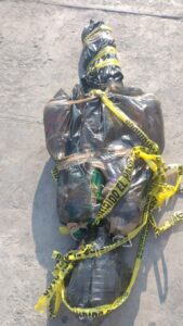 Después de haberse descubierto que un grupo de sujetos que viajaban en una unidad colgaron una figura de plástico en Carretera a Matehuala y Acceso Norte, ahora se confirmó que se presentaron dos similares: en un puente de la carretera a Matehuala a la altura de la zona peatonal de la localidad de Cándido Navarro, siendo una bolsa negra que en su interior contenían prendas de vestir y otro en la capital potosina en Manuel J. Clouthier y Santos Degollado este último siendo una bolsa negra con botellas de plástico y cintas canela y de acordonamiento.