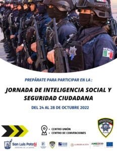 SLP.- La Secretaría de Seguridad y Protección Ciudadana (SSPC) del Ayuntamiento de San Luis Potosí realizará, del 24 al 28 de octubre, la Jornada de Inteligencia Social y Seguridad Ciudadana, en el marco del cierre del programa de Política Pública Municipal de Prevención Social de la Violencia y la Delincuencia con Participación Ciudadana (Previde) que se desarrolló co-participativamente entre el municipio de San Luis Potosí y la Unión Europea.