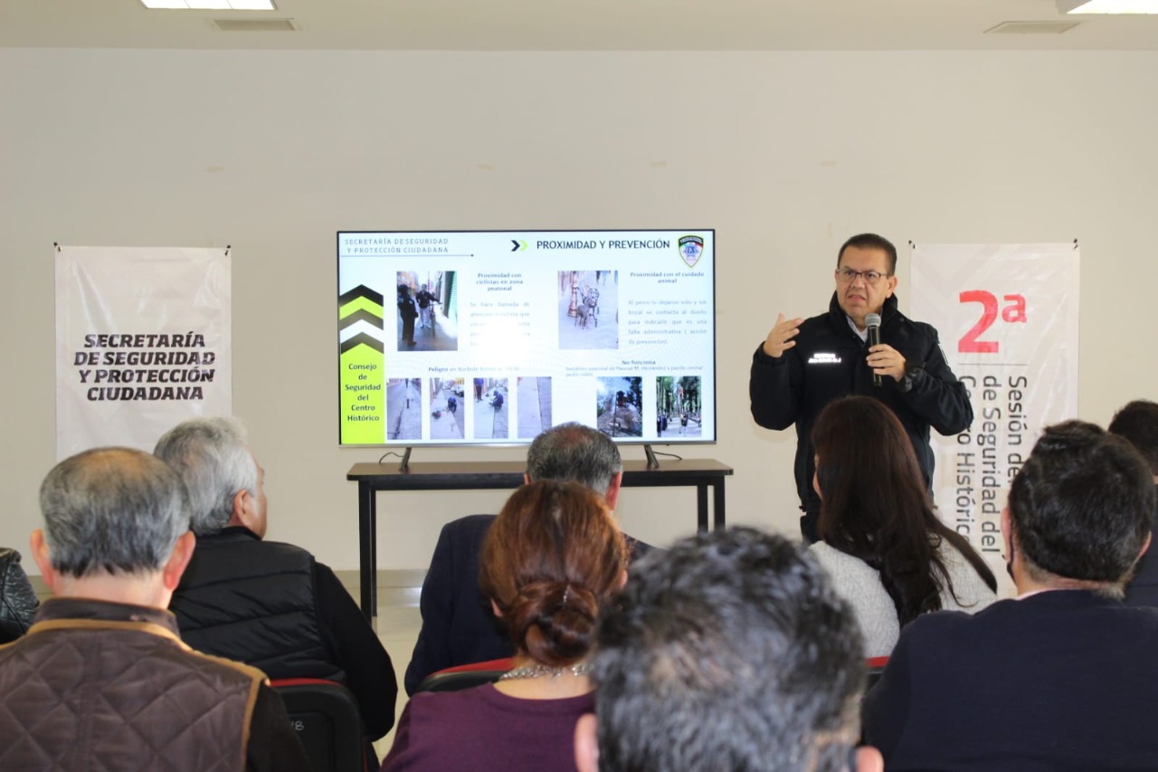 El titular de la Secretaría de Seguridad y Protección Ciudadana (SSPC) del Ayuntamiento de San Luis Potosí, Comisario Juan Antonio Villa Gutiérrez, presentó ante el Consejo de Seguridad del Centro Histórico el informe de resultados operativos correspondiente al periodo de diciembre 2022 y los primeros días de este año, en la segunda sesión del Consejo efectuada la mañana de este sábado en Centro Unión.