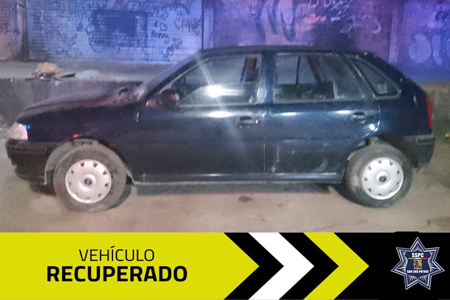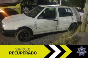 El segundo vehículo recuperado fue un sedán marca Volkswagen Golf de color blanco, localizado en patrullajes de vigilancia en las calles de la colonia Morales, en el cuadrante norte. Mientras los agentes circulaban por la calle Metales, avistaron el vehículo mal estacionado y aparentemente abandonado. Tras verificar su situación, se confirmó que también contaba con reporte de robo vigente desde el 19 de marzo.
