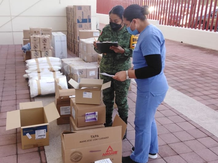Lo anterior, como parte del abastecimiento que el Ejército y Fuerza Aérea Mexicanos en conjunto con la Guardia Nacional, se encuentran realizando en los diversos hospitales del país designados para la atención de pacientes con Covid-19; dicho material, fue enviado desde los Almacenes Generales del Servicio de Sanidad de la S.D.N., que se encuentran en la Ciudad de México.