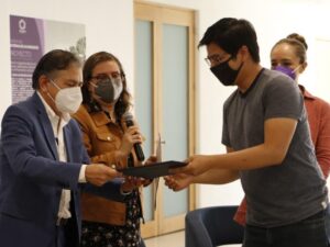 El segundo lugar fue para Ernesto Valadez Rentería, estudiante de doctorado en Nanociencias y Materiales con el trabajo titulado: “Fotodegradación de microcontaminantes orgánicos para el saneamiento de aguas utilizando materiales reciclados o biodegradables”.