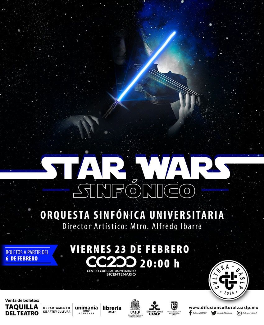 La Secretaría de Difusión Cultural de la UASLP ha organizado este evento musical que promete sumergir a los asistentes en el universo de Star Wars, con la participación de la Orquesta Sinfónica Universitaria (OSU), dirigida por el maestro Alfredo Ibarra. La venta de boletos para este emocionante concierto comenzará este martes 06 de febrero de 2024.