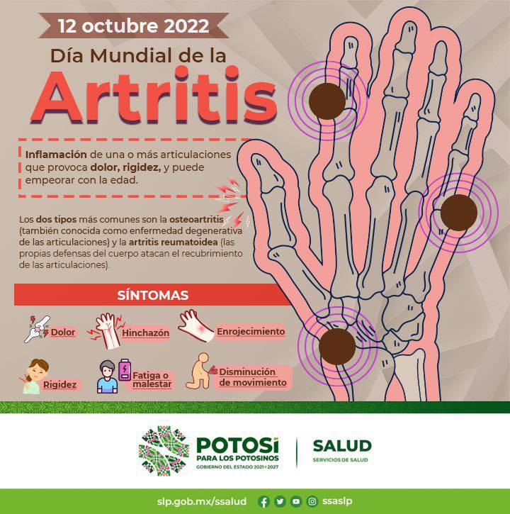 De acuerdo con la Organización Mundial de la Salud (OMS), la artritis reumatoide es una de las mayores causas de ausentismo y retiro laboral prematuro en el mundo. La artritis reumatoide, es una enfermedad inflamatoria de causa autoinmune (inflamación y destrucción de tejidos por anticuerpos propios). Se trata de un padecimiento crónico potencialmente incapacitante. Y con el objetivo de mejorar el conocimiento y conciencia sobre las enfermedades reumáticas, desde 1996, la Organización Arthritis Rheumatism International decidió instauró el 12 de octubre como el Día Mundial de la Artritis.