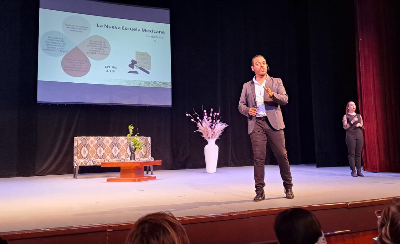 Con el propósito de fomentar en todos los niveles educativos y administrativos del Sistema Educativo Estatal Regular (SEER), el sentido social y humanista de la Nueva Escuela Mexicana (NEM), este viernes se inauguró en el Teatro de la Paz, el ciclo de conferencias 2023-2024, “La transformación de la Educación en México: La Nueva Escuela Mexicana y su implementación”.