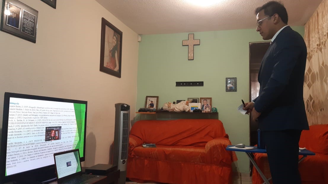 Sobre la preparación que tuvo para la realización del examen virtual, explicó: “Debido a la contingencia, tuve yo muy poco tiempo y oportunidad de prepararme con las personas que estuvieron cerca de la redacción de la tesis, es decir, con los miembros de mi sínodo, mi directora de tesis, los asesores. Si la pandemia no hubiera aparecido, me hubiera preparado mejor”.