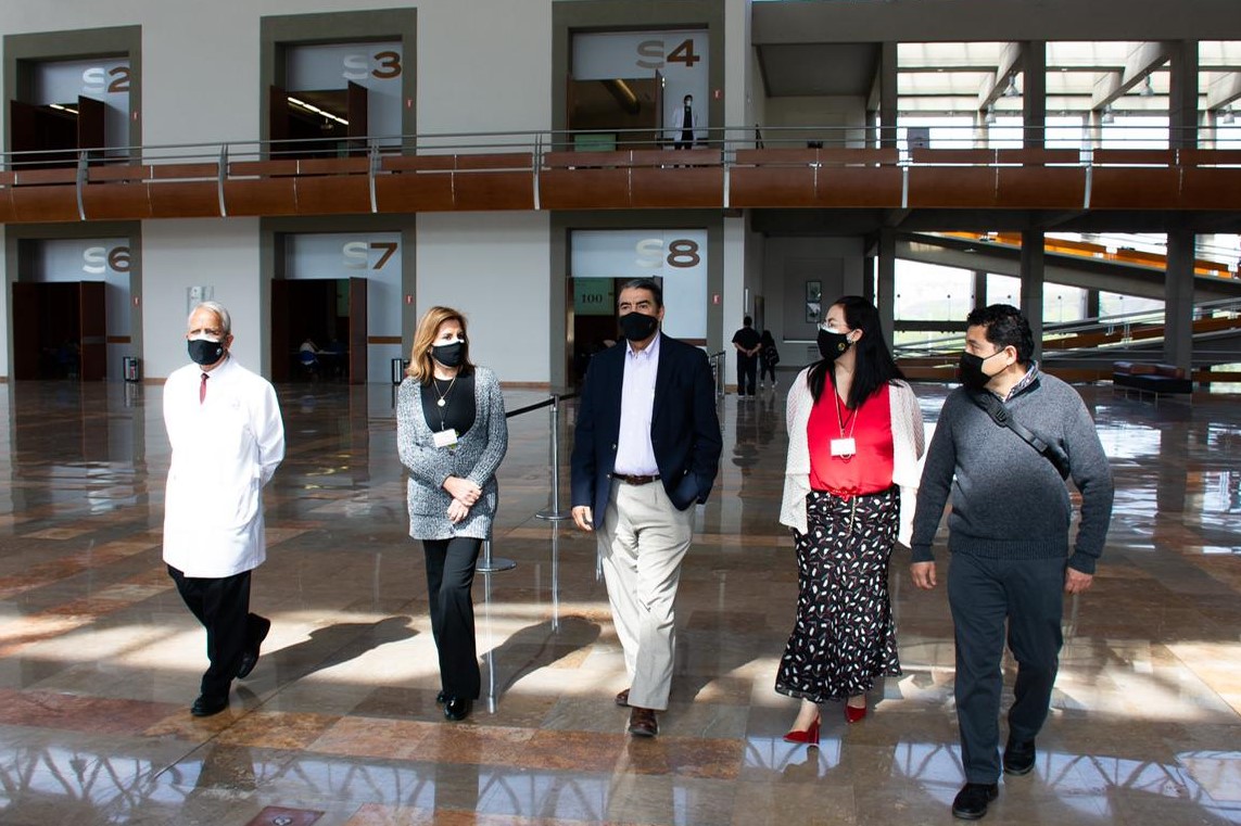 En su visita, estuvo acompañado de la jefa de la División de Servicios Escolares, Dra. Claudia Elena González Acevedo; de la jefa de la División de Servicios Estudiantiles, Dra. María de Socorro Ruíz Rodríguez; y el director del Centro de Salud Universitario, Dr. José Alfredo Haro Ortiz.