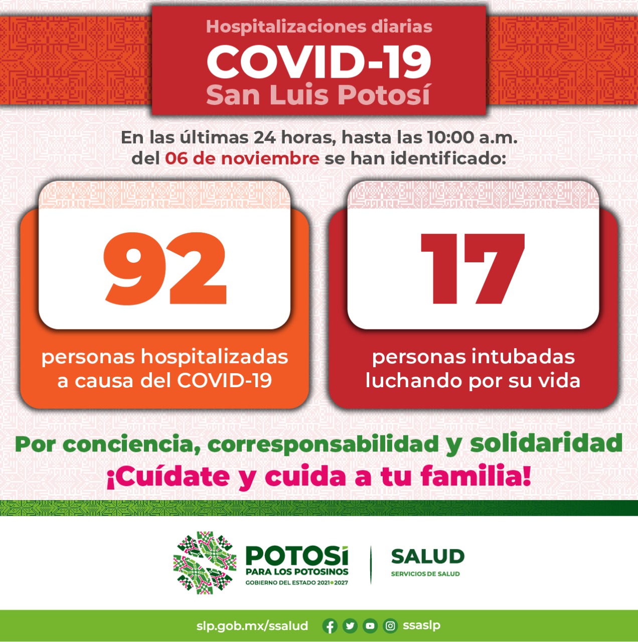 Para este día, permanecen 92 personas hospitalizadas, de las que 17 requieren de respiración asistida.