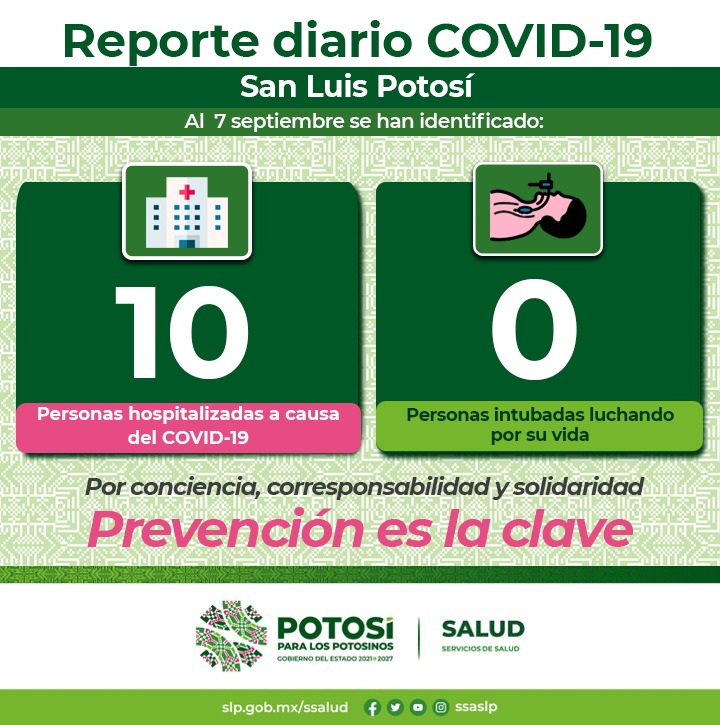 En el Estado, hasta este 7 de septiembre se han registrado 7 mil 630 defunciones por Covid-19, concentrándose en nueve municipios el 79.5 del total las muertes; es la capital potosina la que tiene el mayor número de pérdidas por el virus, ya que han fallecido 3 mil 989 personas del 20 de marzo de 2020 al día de hoy