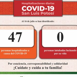 Se  reportan dos nuevas defunciones, aumentando la cifra de muertes a 7 mil 570  en la Entidad; los decesos corresponden a una mujer y a un hombre, en un rango de edad de 77 a 80 años de edad, ambas personas sin registro de vacunación contra Covid-19 y entre los factores de riesgo se registran diabetes, hipertensión, enfermedad del corazón y enfermedad pulmonar, hay hospitalizadas 47 personas, de las que ninguna requiere de respiración asistida.