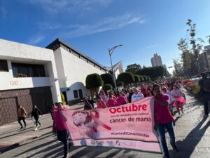 Además de sobrevivientes, personas que están luchando contra la enfermedad y sus familias, acudieron a la caminata la secretaria de Cultura en el Estado, Elizabeth Torre Méndez; la directora de Salud Pública, Lucía Gabriela Rosales Ortuño; la jefa de la Jurisdicción Sanitaria No. I entre otras. La caminata inició a las 9:00 horas en el Jardín de Tequisquiapan hasta el Museo Francisco Cossío, en dónde las y los participantes, luciendo una prenda color rosa, realizaron un lazo humano en conmemoración de la lucha contra el cáncer de mama.