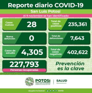 Se registran  28 nuevos contagios de Covid-19 en la Entidad, confirmando el Comité Estatal para la Seguridad en Salud y los Servicios de Salud 235 mil 361 casos totales de esta enfermedad.