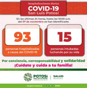 Para este día, permanecen 93 personas hospitalizadas, de las que 15 requieren de respiración asistida.