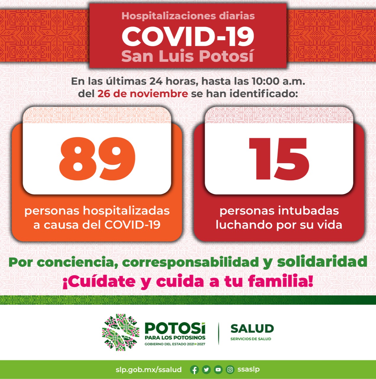 Los Servicios de Salud y el Comité Estatal para la Seguridad en Salud, informan que, hasta este viernes 26  de noviembre se registran 103 mil 169 casos totales de Covid-19, con la confirmación de 84 nuevos contagios de acuerdo al reporte epidemiológico de las últimas 24 horas.