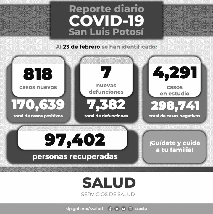 De estos nuevos contagios, 670 se detectaron en la Jurisdicción Sanitaria I; 10 casos en la Jurisdicción Sanitaria II de Matehuala; 16 en la Jurisdicción Sanitaria III de Villa de Pozos; 12 en la Jurisdicción Sanitaria IV de Rioverde; 83 en la Jurisdicción Sanitaria V de Ciudad Valles; nueve en la Jurisdicción Sanitaria VI de Tamazunchale y 10 casos nuevos en la Jurisdicción Sanitaria VII de Tancanhuitz.