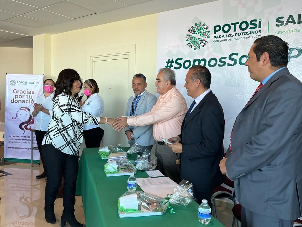 Al realizar la entrega simbólica de pelucas oncológicas, el secretario de Salud en el Estado, Daniel Acosta Díaz de León, anunció que se reactiva el trabajo de elaboración permanente de pelucas para pacientes con cáncer en el taller ubicado en la Jurisdicción Sanitaria No. VI en el municipio de Tamazunchale, atendiendo con ello la instrucción del Gobernador de San Luis Potosí Ricardo Gallardo Cardona.