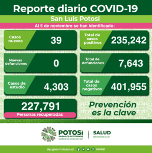 Se confirmaron 39  nuevos contagios de Covid-19 en la entidad. El Comité Estatal para la Seguridad en Salud y los Servicios de Salud informan se registran 235 mil 242  casos totales de este padecimiento.