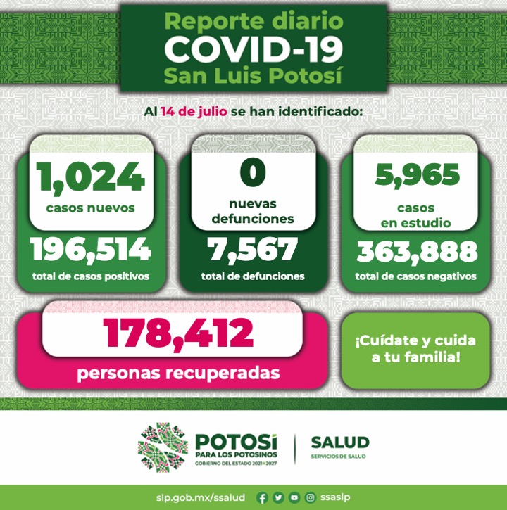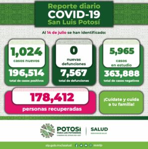 El Comité Estatal para la Seguridad en Salud y los Servicios de Salud, en el Informe Diario de Casos Covid-19, informan que fueron confirmados Mil 024 nuevos contagios, sumando en el Estado 196 mil 514 casos totales de este padecimiento.