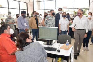 El Gobernador del Estado, Juan Manuel Carreras López y el General de Brigada, Diplomado de Estado Mayor, Luis Rodríguez Bucio, Comandante de la Guardia Nacional, realizaron un recorrido para supervisar el desarrollo de la campaña de vacunación para las y los trabajadores de la educación de todos los niveles, tanto del sector público como privado en San Luis Potosí.