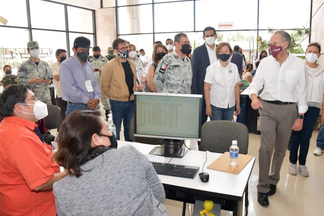El Jefe del Ejecutivo acudió a las sedes de la Universidad Tecnológica y del Tecnológico de San Luis, para presenciar el proceso de inmunización, el cual se llevó a cabo en 20 sedes ubicadas en 13 micro regiones de la entidad, del 4 al 7 de mayo.