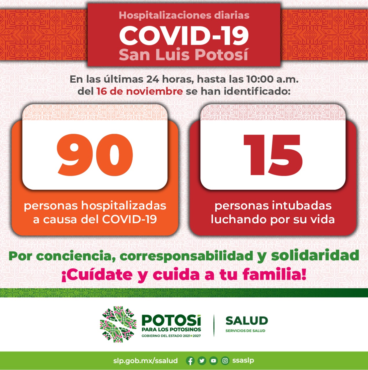 + El llamado a la población en general es para que redoble las medidas de seguridad portando el cubrebocas y aplicando la sana distancia de manera indispensable en cualquier espacio.