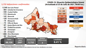 Este día, se presentaron 269 nuevos casos para llegar a 68 mil 136 confirmados de 204 mil 113 personas estudiadas; se han descartado 135 mil 212 personas y la cifra de pendientes de estudio es de 765 sospechosas. Los decesos subieron a 5 mil 732 con un índice de letalidad que continúa bajando, este día con 8.41% decesos por cada 100 casos.