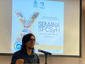Finalmente, Ikram De Loera Torres, consejero alumno de la FCSyH, invitó a sus compañeros a disfrutar de las actividades que también serán de gran beneficio en su formación profesional. “Las ciencias sociales y humanidades tienen un campo amplio de trabajo, sin embargo, a veces no es muy conocido y esta semana representa un excelente momento”.