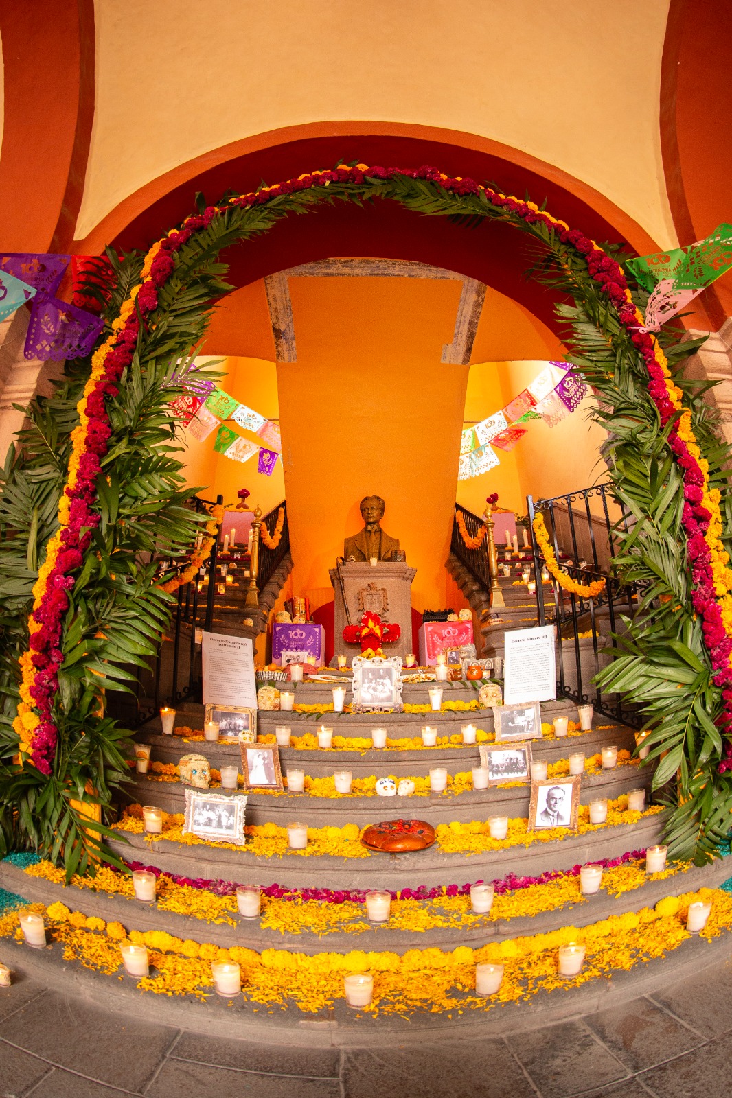El Altar 2023 de la UASLP dedicado a Rafael Nieto Compeán, puede ser visitado en el Edificio Central en un horario de 08:00 a 20:00 horas, hasta el próximo viernes 03 de noviembre de 2023.