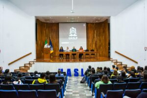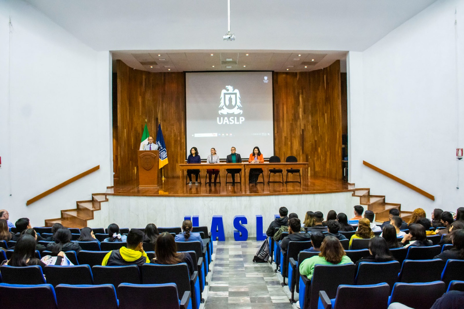 Destacó la presencia en el presídium de la Dra. Violeta Mendezcarlo Silva, coordinadora de la Licenciatura en Derecho; la Dra. Blanca Patricia Salazar Chávez, responsable del programa de Sustentabilidad en la Facultad de Contaduría y Administración; y el Mtro. Miguel Meave Llanera, docente de la Facultad de Derecho.