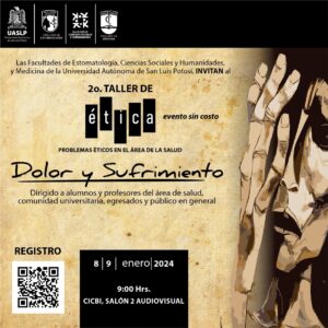 El dolor y el sufrimiento en los pacientes, son temas humanos, y representan una de las reflexiones que dan pie a la necesidad de otorgar el 2do Taller de Ética, Dolor y Sufrimiento; el 08 y 09 de enero del 2024, entre las Facultades de Estomatología y Ciencias Sociales y Humanidades de la UASLP .