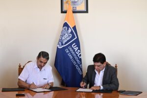 Por la UASLP, firmó el rector, Dr. Alejandro Javier Zermeño Guerra, y por el IMPLAN, el Arq. Javier Ernesto Flores Navarro, director general. Atestiguó, el Mtro. Federico Arturo Garza Herrera, secretario general, y personal del IMPLAN.