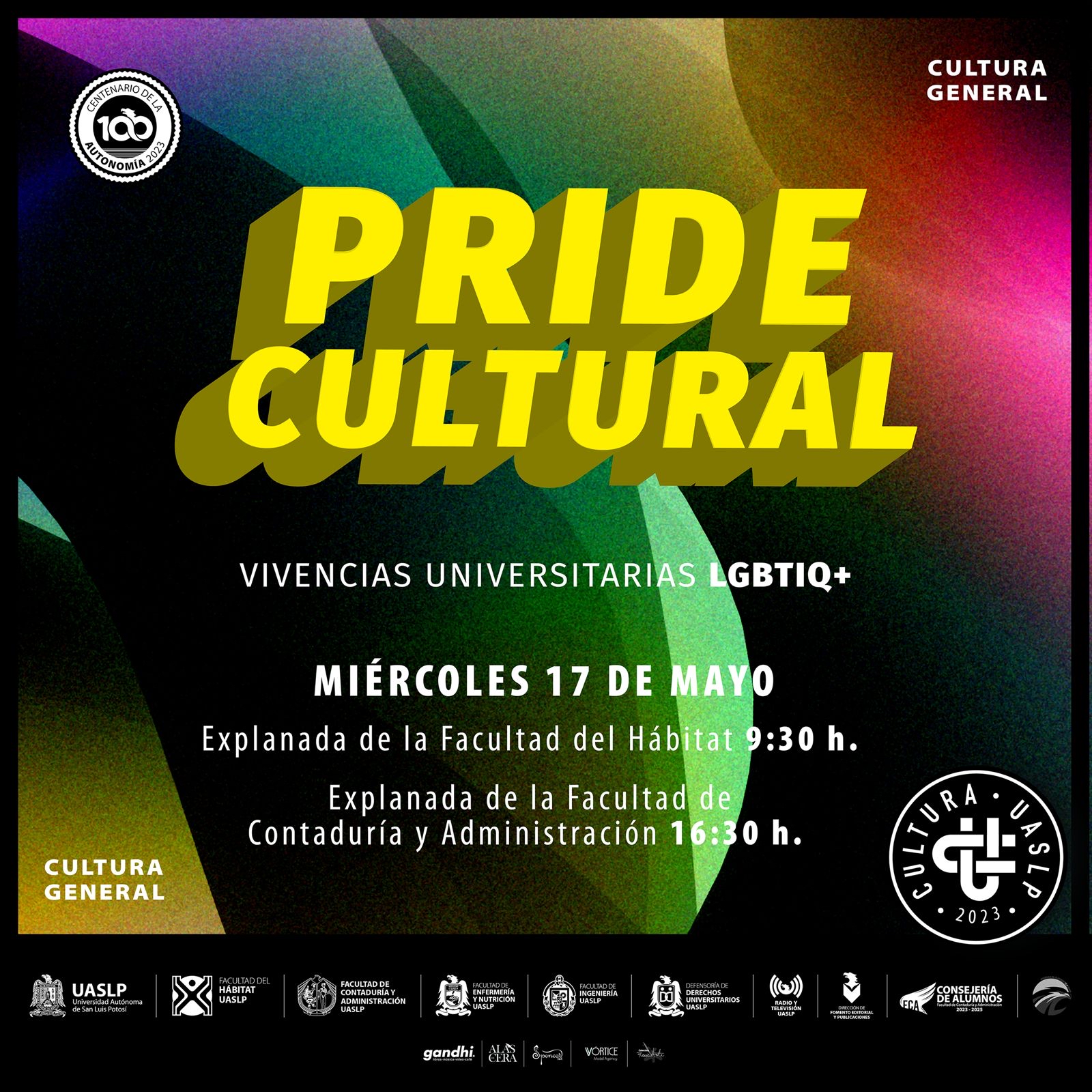A 100 años de celebrar la obtención de la autonomía, la jornada cultural Pride cultural 2023 Vivencias universitarias LGBTIQ+, se propone como un espacio de convivencia pacífica de respeto equitativo, libertad, diversidad de género, sexual y cultural.