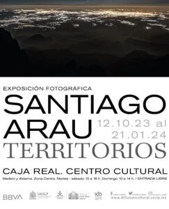 La Universidad Autónoma de San Luis Potosí a través de la Secretaría de Difusión Cultural, en conjunto con BBVA México presentan “Territorios”, exposición fotográfica del artista mexicano Santiago Arau y que estará disponible en el Centro Cultural Universitario Caja Real, del 12 de octubre de 2023 al 21 de enero de 2024.