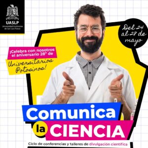 Finalmente, el viernes 28 de mayo, se realizará el panel “¿Cómo se divulga la ciencia? Experiencias de los columnistas de Universitarios Potosinos, a las 12:00 del día. Evento sin costo y virtual. Toda la programación en: https://bit.ly/3fuA9Ny.