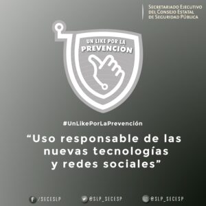 El Secretariado Ejecutivo del Consejo Estatal de Seguridad Pública de San Luis Potosí (SECESP), dio a conocer que continúa con la campaña #UnLikePorLaPrevención, que tiene como propósito promover el uso responsable y seguro de las nuevas tecnologías y redes sociales entre niños, niñas, adolescentes, docentes y padres de familia pertenecientes al sistema educativo.