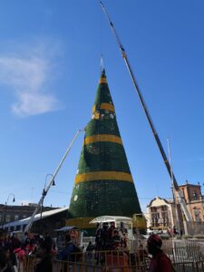 Mientras tanto, el bullicio en el Centro Histórico continua, los motores de la grúa con soporte de más de 200 toneladas mueven su brazo con delicadeza de un punto a otro, los trabajadores conectan miles de series navideñas, los músicos callejeros tocan baladas y villancicos a cambio de monedas y la gente circula como hormigas diminutas bajo el Árbol monumental que se asemeja a su confianza de que con este Gobierno del Estado les irá mucho mejor.
