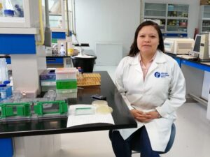 La doctora María Jazmín Abraham Juárez, investigadora de la División de Biología Molecular del IPICYT, dio a conocer que en laboratorios del Instituto se lleva a cabo la expresión de proteínas recombinantes en la bacteria Escherichia coli, las cuales son usadas en inmunización de ratones y cuyos de laboratorio para la producción de anticuerpos.