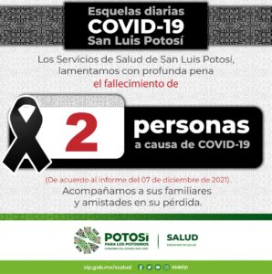 La Secretaría de Salud de San Luis Potosí y el Comité Estatal para la Seguridad en Salud, informan que hasta este martes 7 de diciembre se registran 103 mil 909 casos totales de Covid-19, con la confirmación de 32 nuevos contagios en las últimas 24 horas.